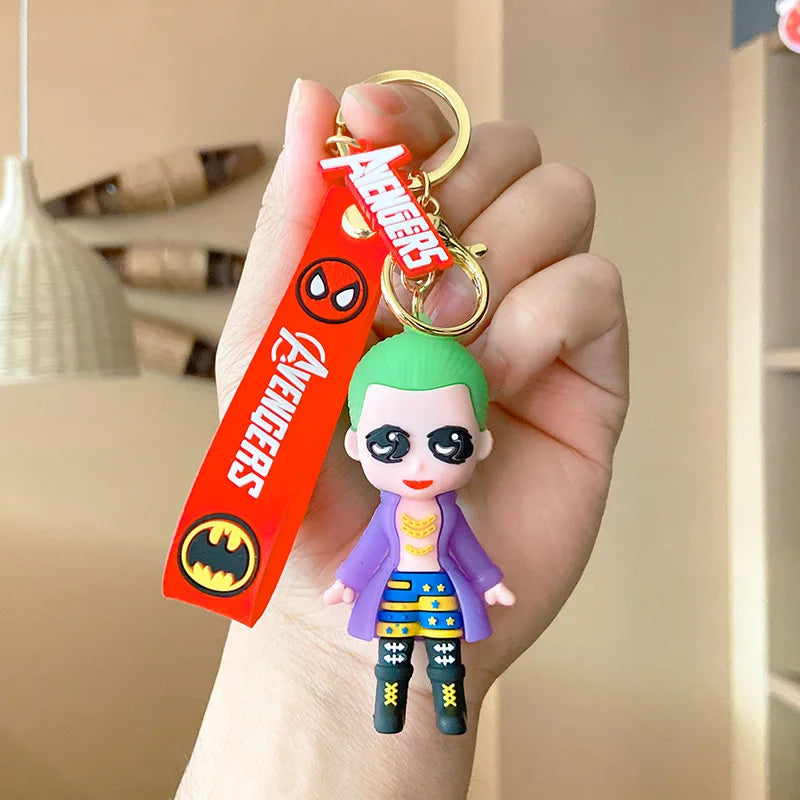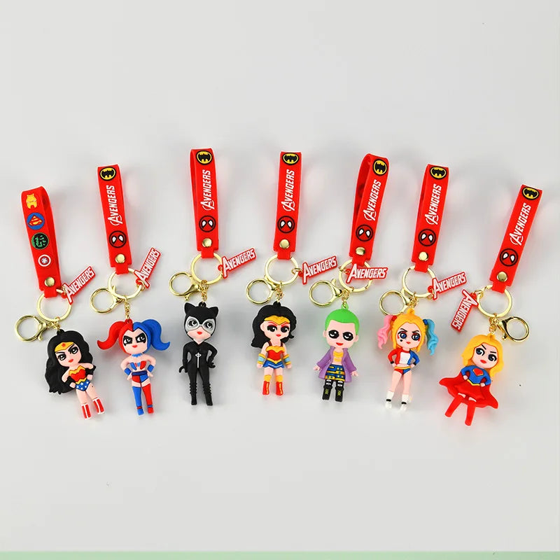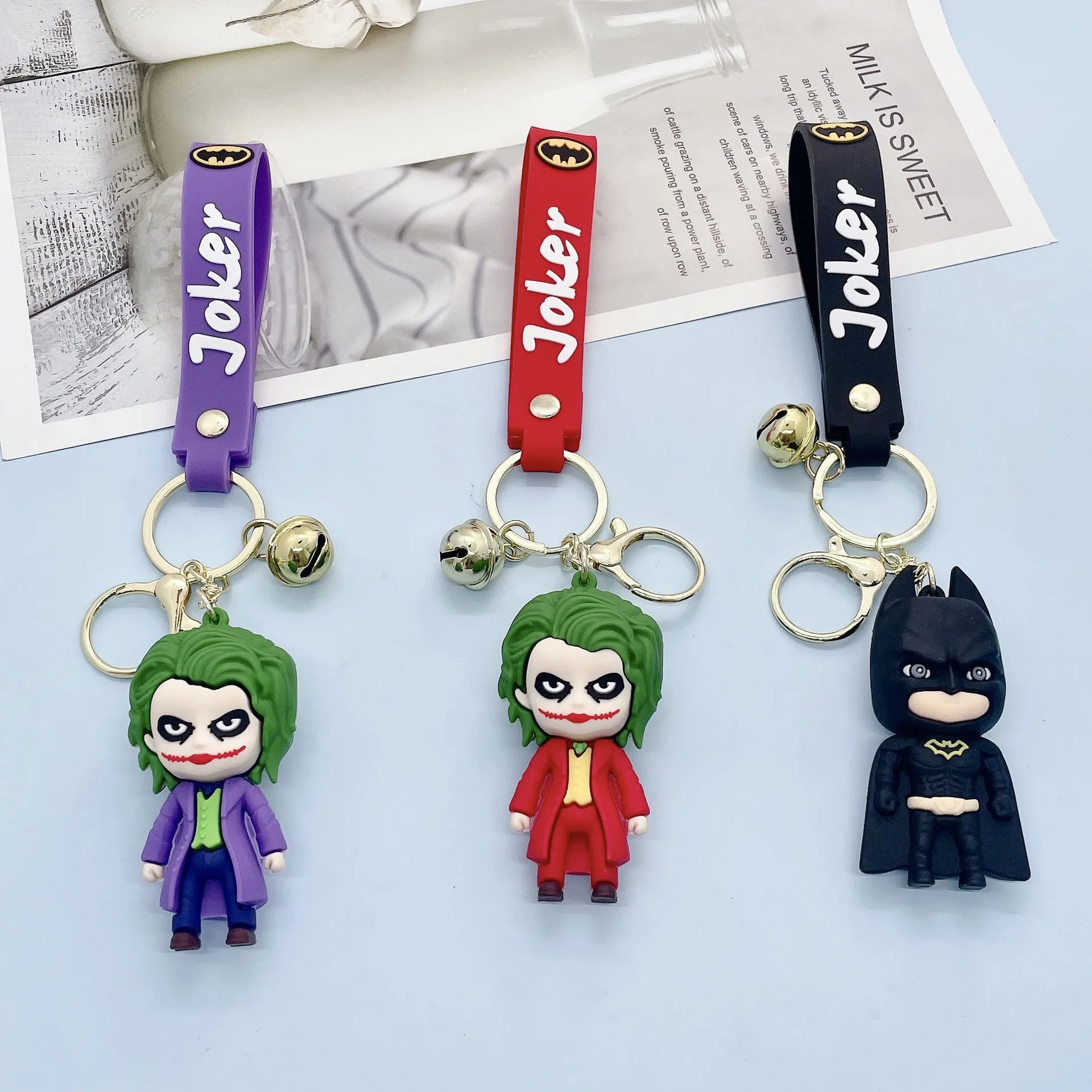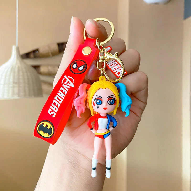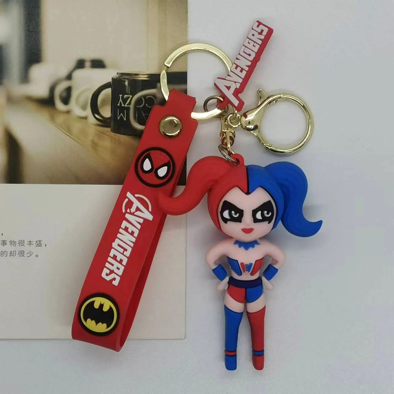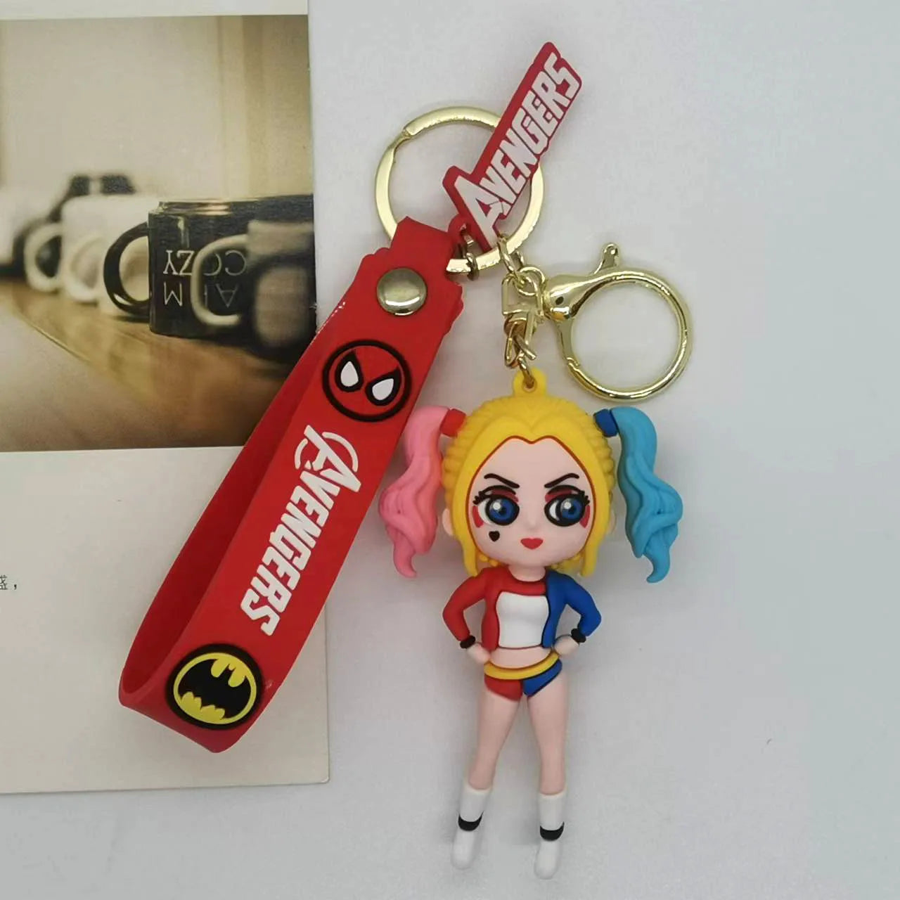 Anime Harley Quinn Cartoon Marvel Batman Joker Image Doll Keychain Cute Key Ring Pendant Wonder Woman Jewelry Gifts for Friends