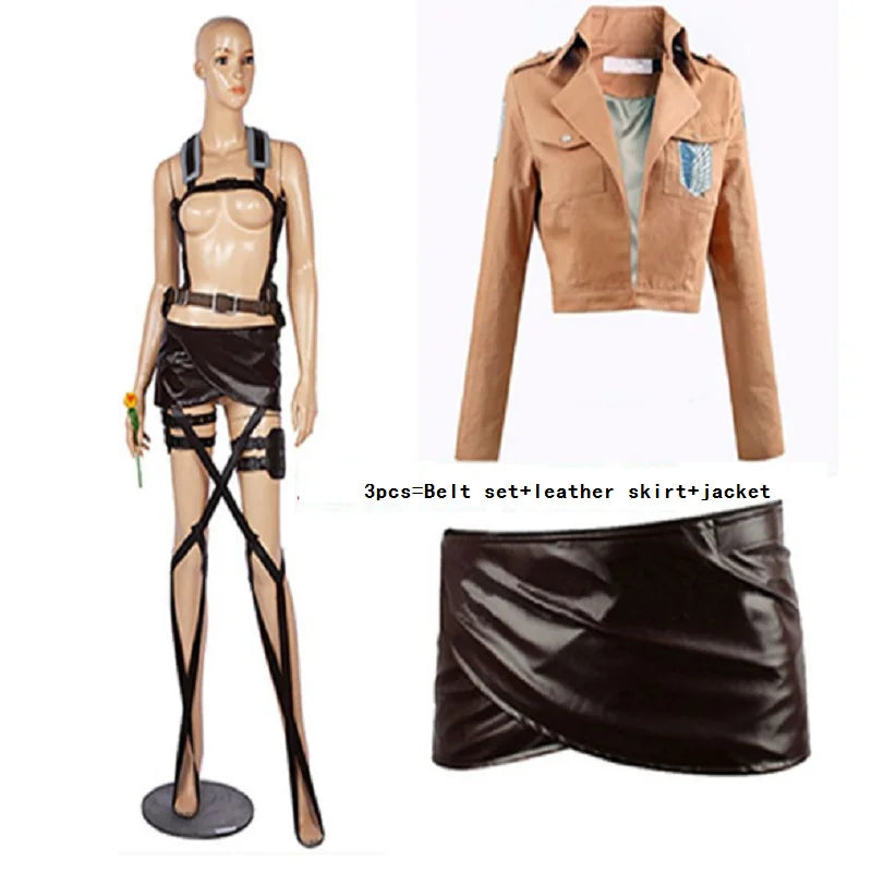 Attack on Titan Cosplay Shingeki no Kyojin Mikasa Ackerman Cosplay Costume Jacket Shawl Belt Suit Leather Shorts Full Sets