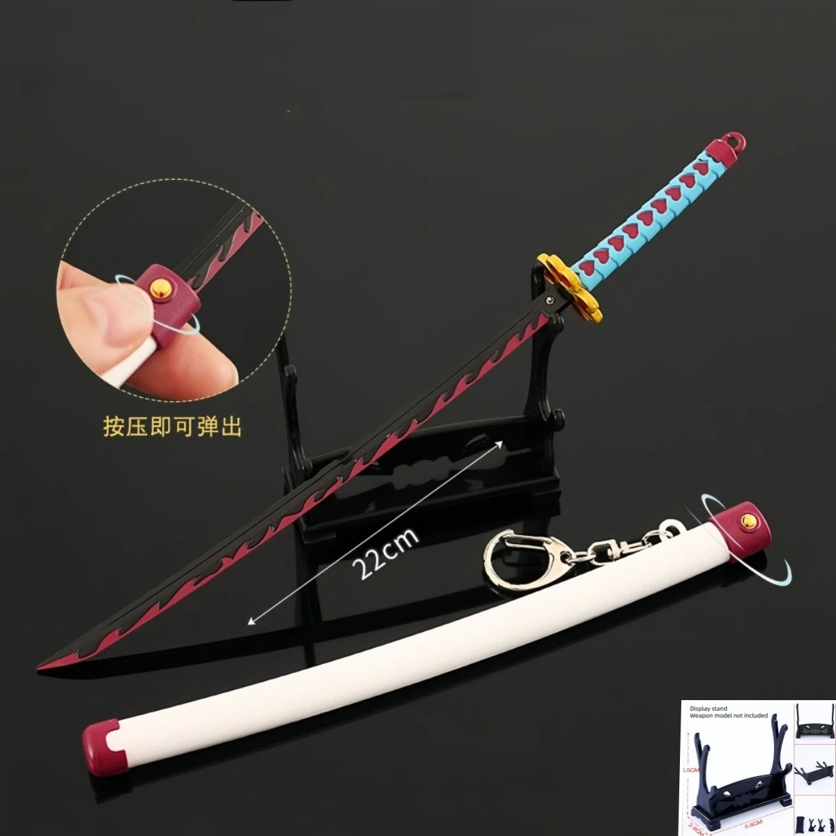 Demon Slayer Peripherals Tanjiro, Agatsuma Zenitsu Katana Full Metal Weapons Bounce Jump Knife Crafts Toy Sword Model Ornaments