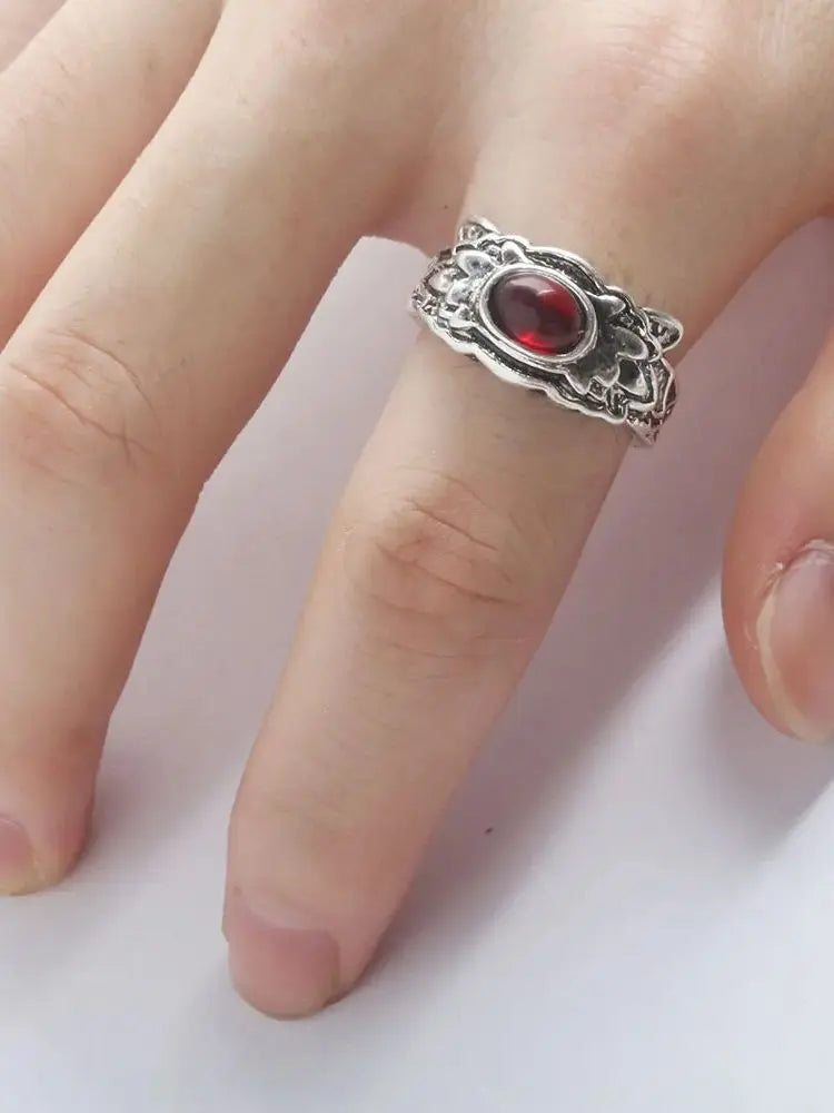 Game Dark Souls Ring Black Red Sapphire Vintage Style Ring Adjustable Metal Rings For Women Men Cosplay Jewelry Accessories Gift