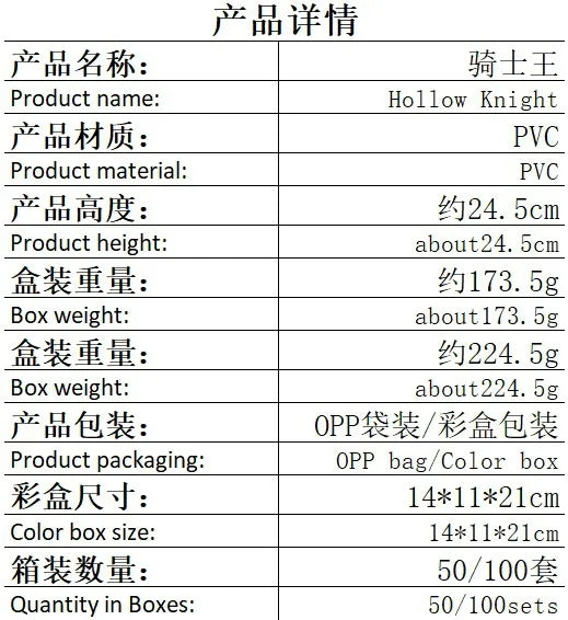 SPECIFICATIONSACG Character: King of Hollow KnightBrand Name: Hot ToysBy Animation Source: Western AnimiationCertification: CEChoice: yesCommodity Attribute: Finished GoodsCompletion Degree: Finished...