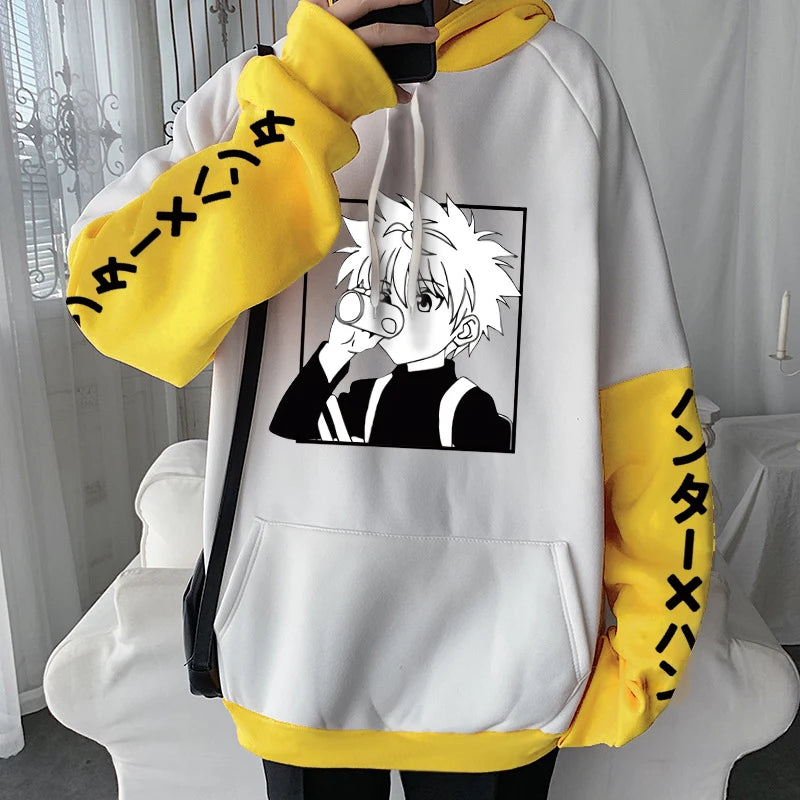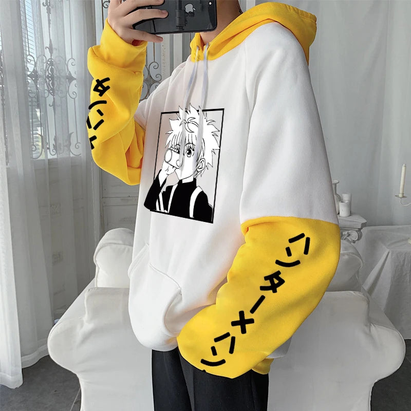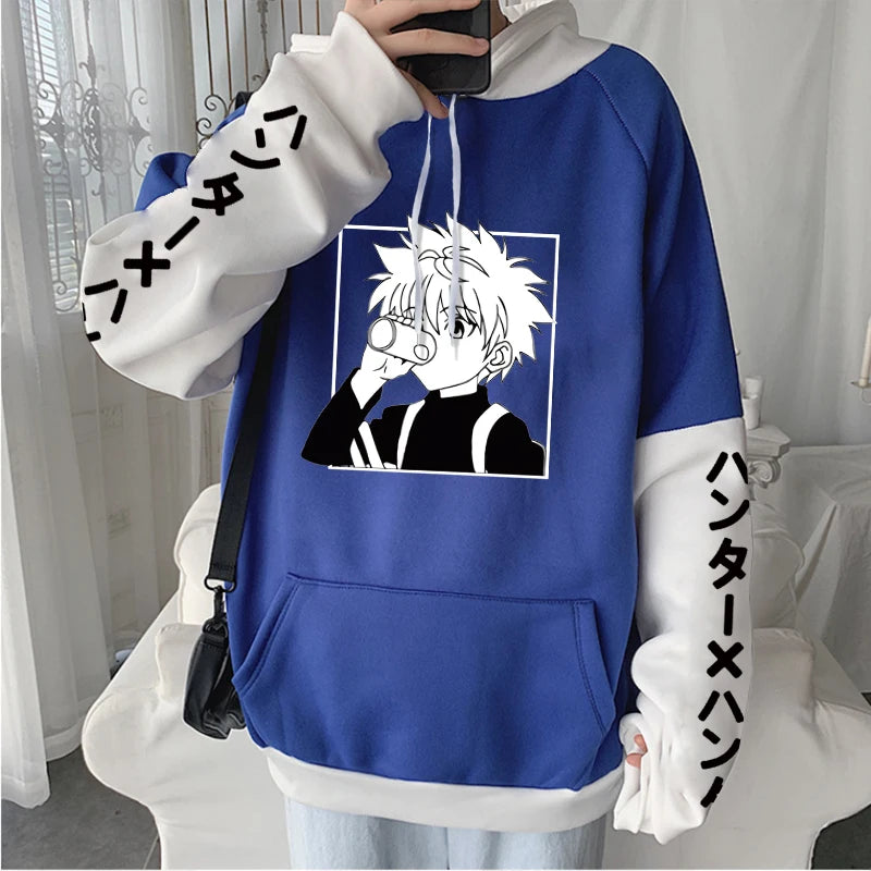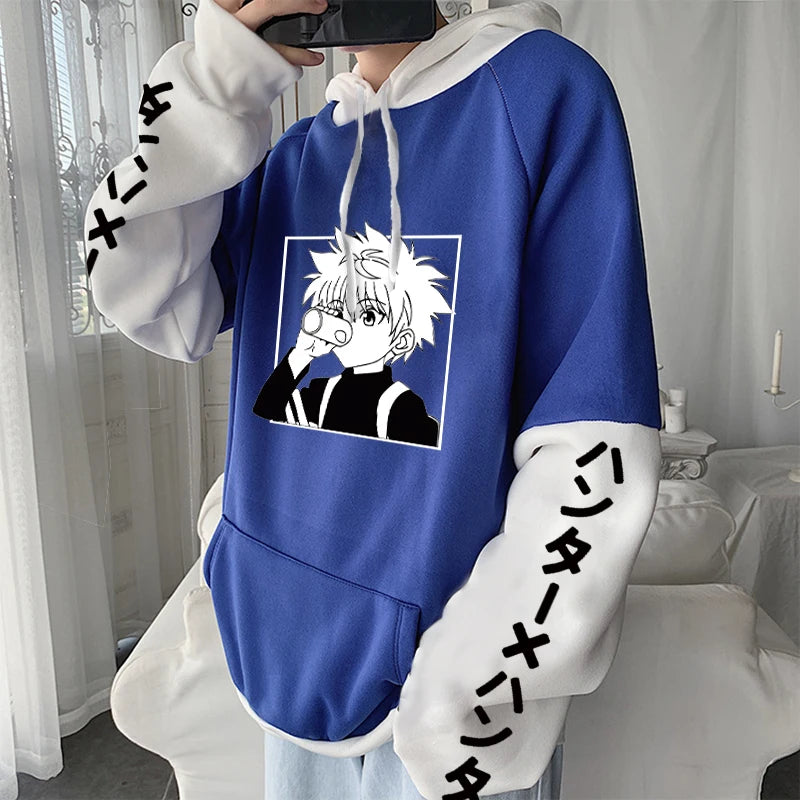 Hot Japanese Anime Hunter X Hunter Killua Zoldyck Harajuku Hoodie Men Clothing Manga HXH Graphics Oversized Patchwork Sweatshirt