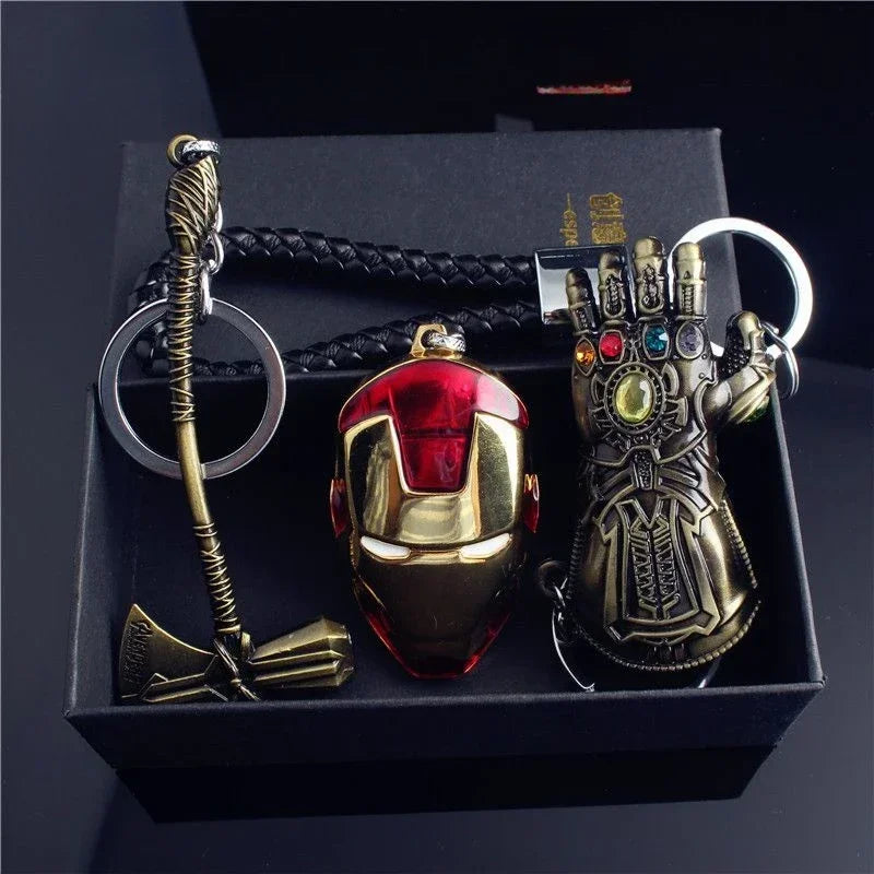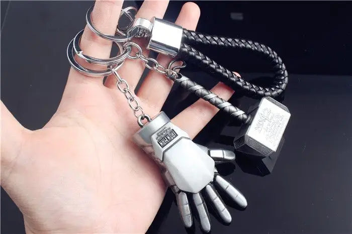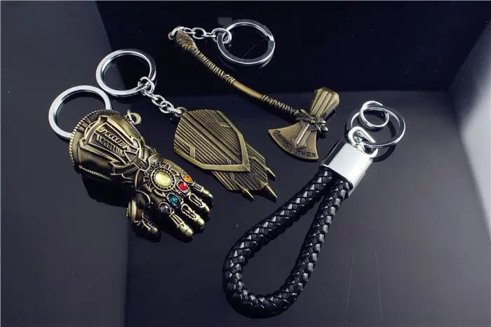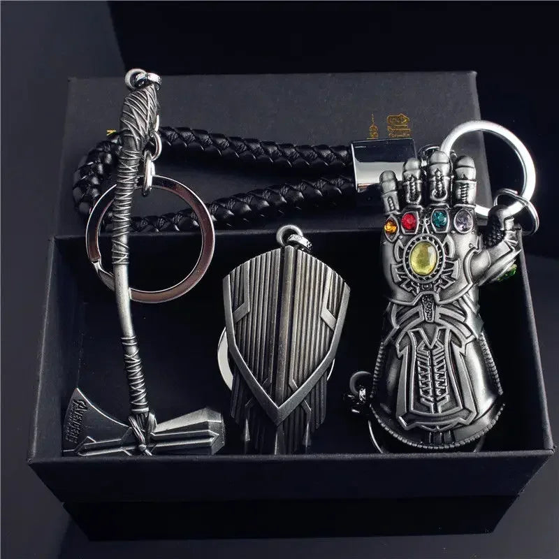 Marvel The Avengers Thanos Glove Keychain Men's Metal Battle Ax Thor's Hammer Shield Pendant Car Keychain creative holiday gift