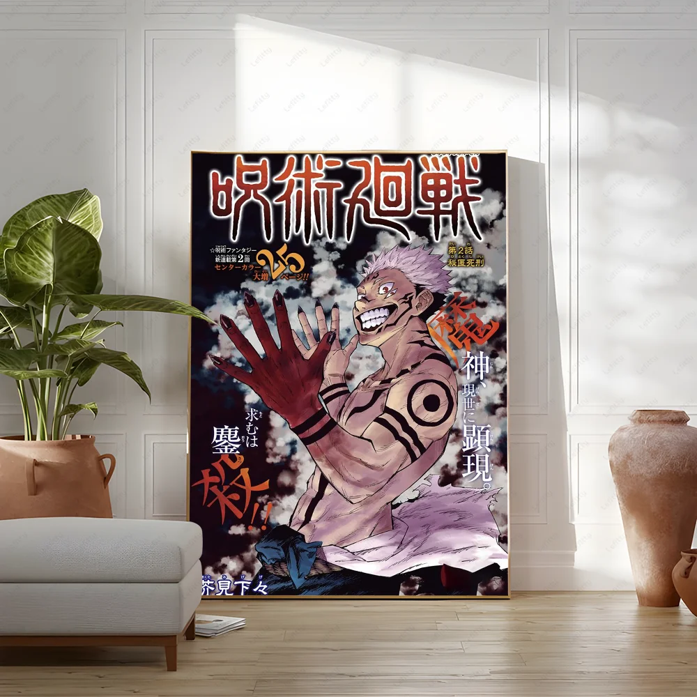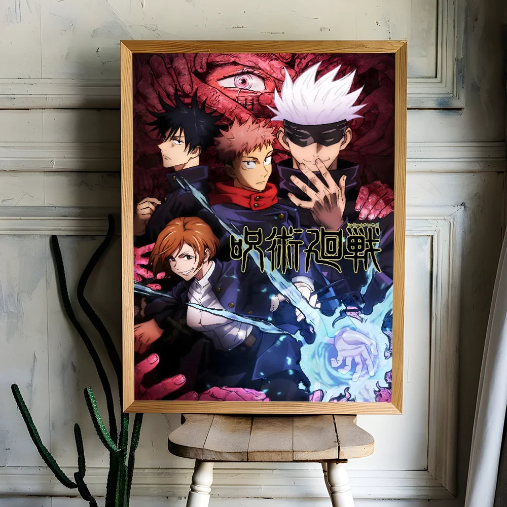 Poster Sticky Wall Art J-Jujutsu K-Kaisen Anime Printing Waterproof Home Living Bed Room Bar Aesthetic Decor