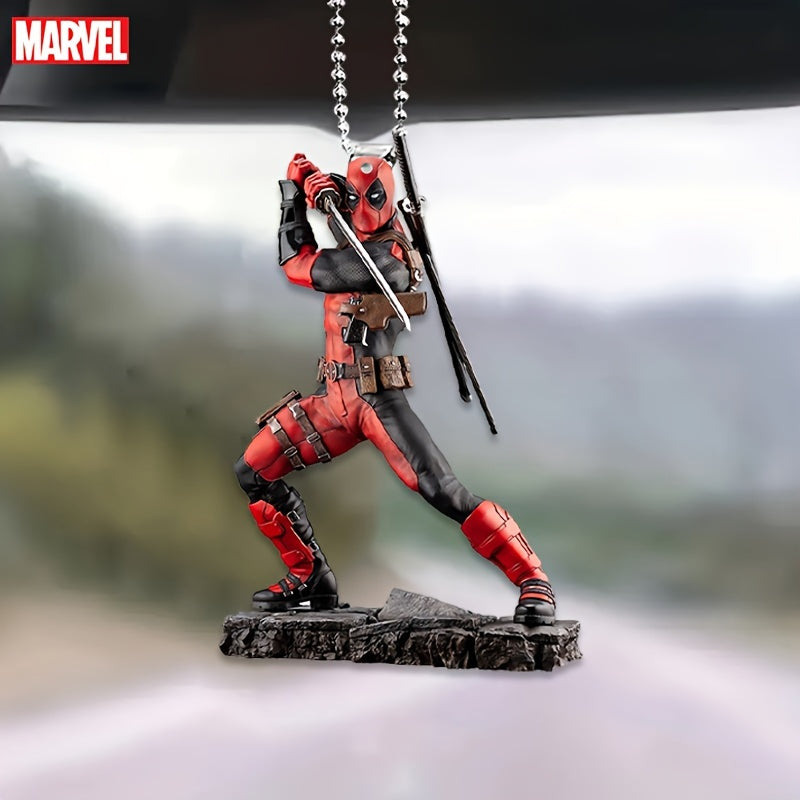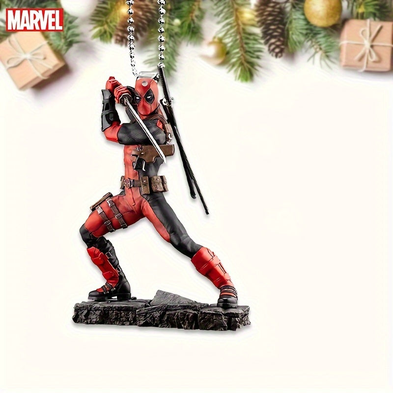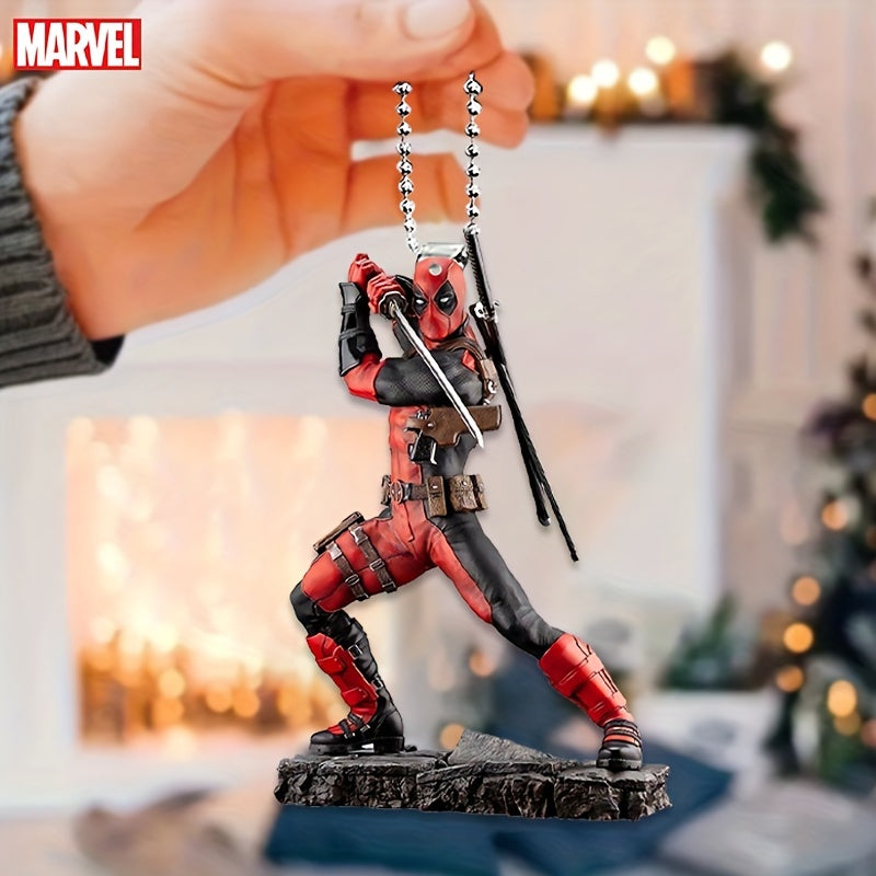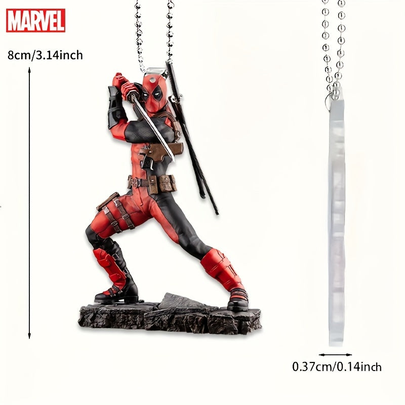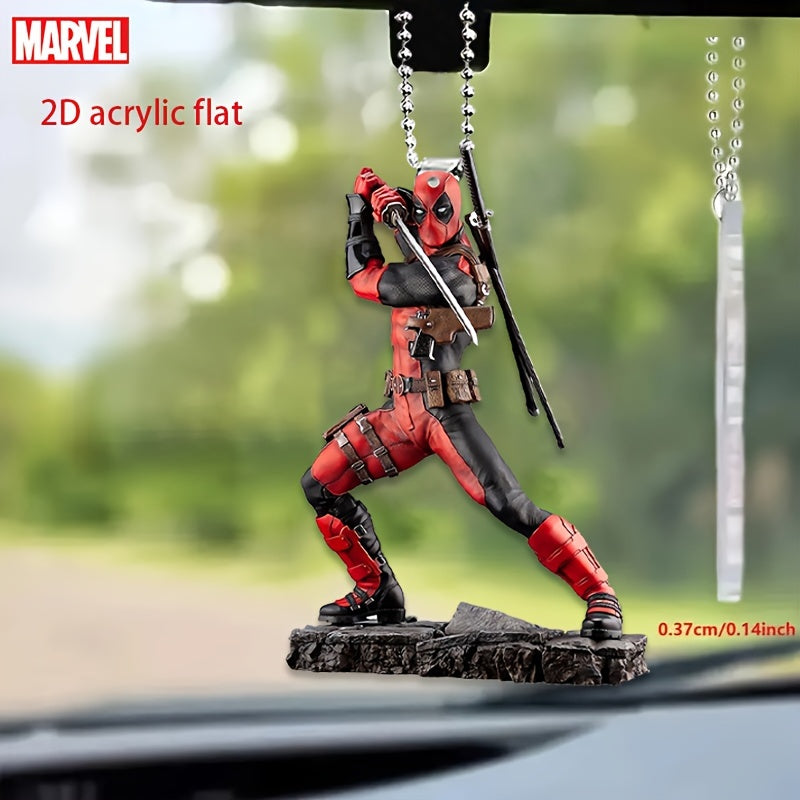 Ume Brand Marvel Deadpool 2D Acrylic Car Accessory - Vibrant Rearview Mirror & Steering Wheel Decor Pendant, Durable Keychain, Artistic Design, Use, Movie Theme, No Power Needed, Featherless, Home Decor