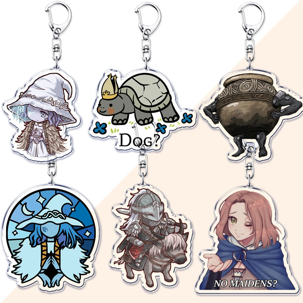 Video Game Dark Souls Keychains for Women Accessories Bag Bloodborne Malenia Melina Keyrings Jewelry Fans Gaming Friends Gift