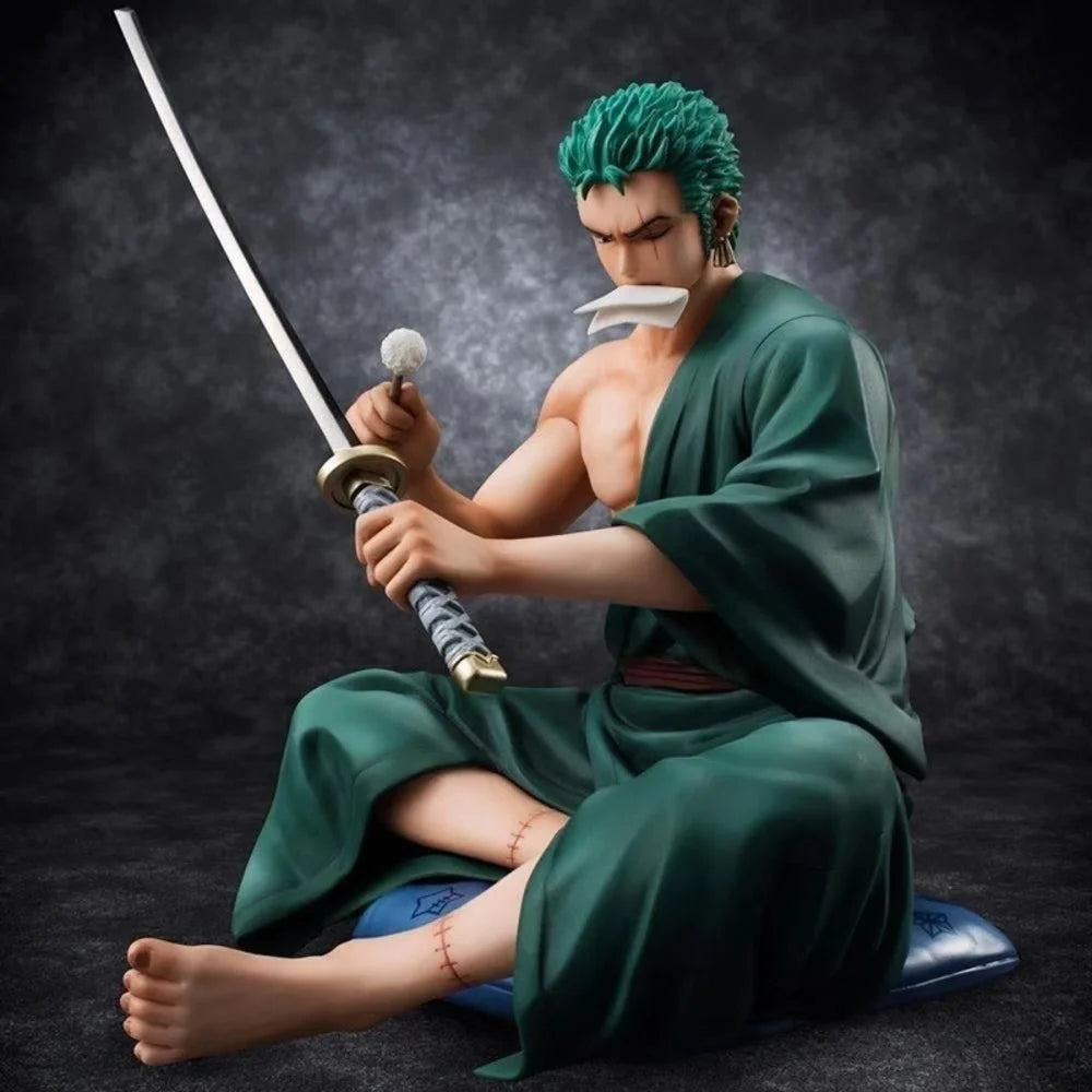 Zoro Sitting with Sword Figurine: Detailed Anime Collectible for Fans, Perfect Gift for Sword Enthusiasts & Decor Lovers.
